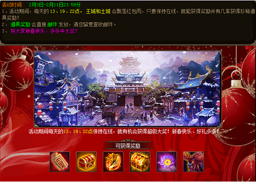 a) 活动期间,每天13:30、15:30及19:30会在土城刷出小年兽,击杀可获得猴年爆竹等奖励。