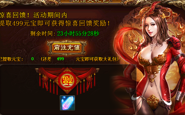 活动详情:活动期间充值达到指定元宝数,即可领取一份对应充值礼包,充值礼包每天重置,请及时领取。