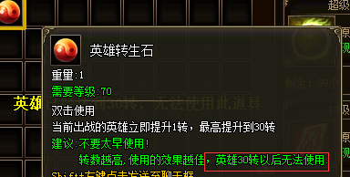 但英雄转生石只能提升英雄到30转,30转以后不能使用。