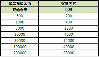活动内容:活动时间内,每日充值满相应档次的金币即可领取丰富奖励一份。