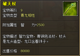 破天杖:智力宝物,青铜色法杖,杖头是龙头造型,龙口含着珠子。