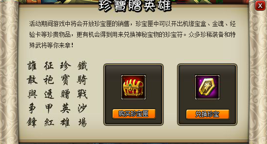 注:活动期间所有珍宝只能兑换一次,已经兑换过的奖励将无法再次进行兑换。珍宝匣购买没有限制。