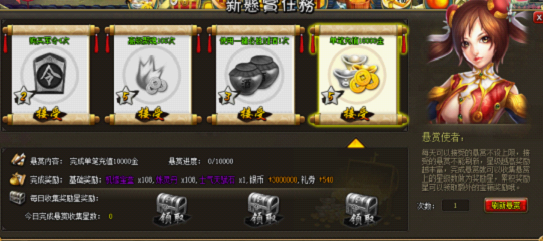 活动内容:活动时间内,每日充值满相应档次的金币即可领取丰富奖励一份。