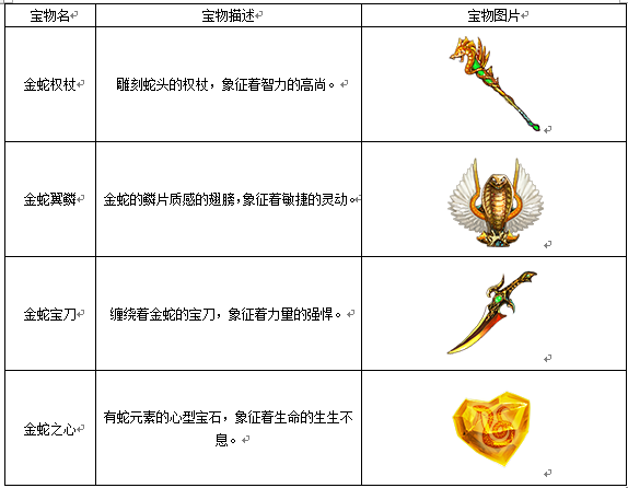 1. 珍宝活动增加一套宝物出售:金蛇四宝。