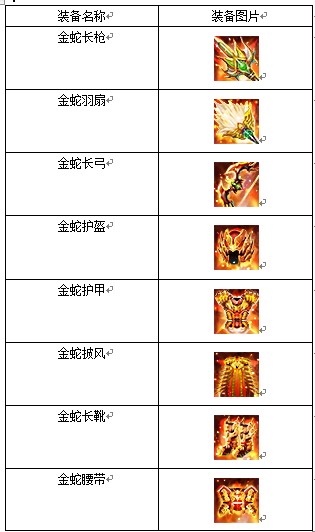1. 珍宝活动增加一套装备出售:金蛇套装。