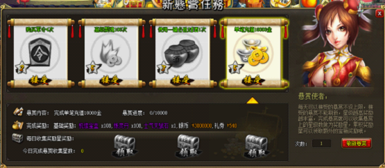 7)每完成一个悬赏任务,按完成任务的星级累积星级数,累积到一定星级获得额外奖励。
