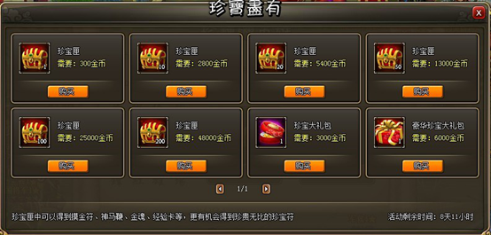 注:活动期间所有珍宝只能兑换一次,已经兑换过的奖励将无法再次进行兑换。珍宝匣购买没有限制。