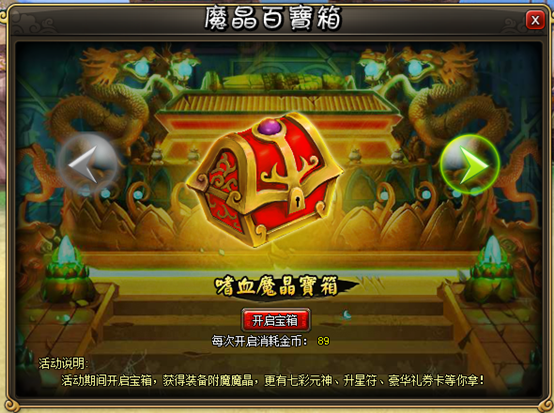 活动介绍:活动开启时,在右上角显示专用入口【魔晶百宝箱】。