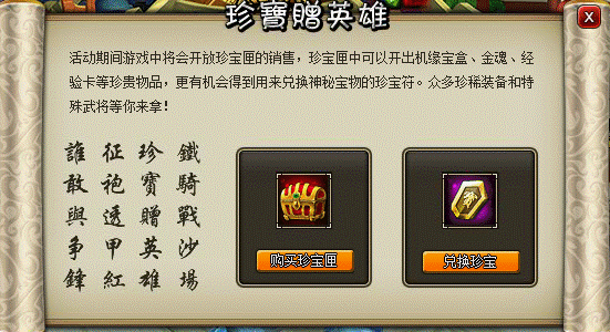 注:活动期间所有珍宝只能兑换一次,已经兑换过的奖励将无法再次进行兑换。珍宝匣购买没有限制。