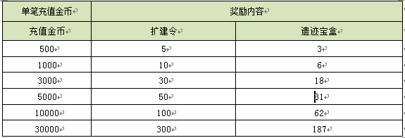 活动二:单笔充值送遗迹宝盒、扩建令