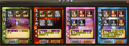 1)特定的三国名将卡可以组成卡片组合,当收集到某一组合的全部卡片后,就可以领取奖励。
