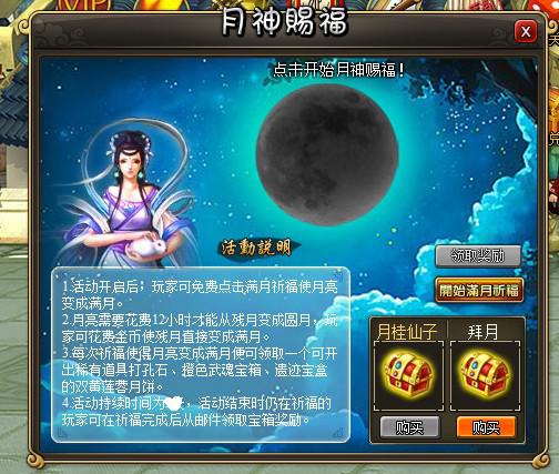 1. 活动开启后,玩家可免费在活动面板点击满月祈福使月亮变成满月。
