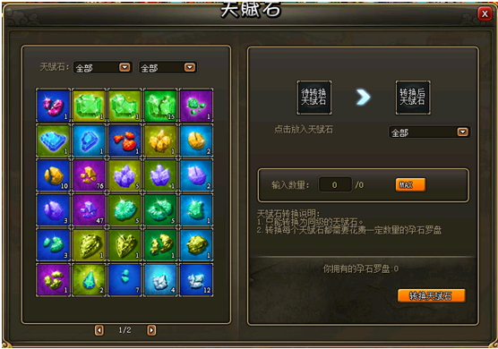 注:宝石转换需要消耗一定的孕石罗盘,孕石罗盘可在活动中获得。