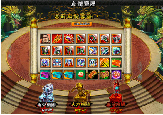 l 玩家可花费真龙图鉴在真龙宝库中进行探索获取宝物。