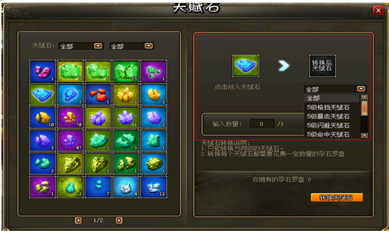 2. 点击左侧要转换的宝石后,在右侧选择要转换成的宝石类型以及数量,最后点击转换按钮进行转换: