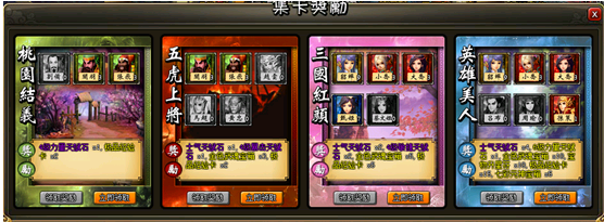 1)特定的三国名将卡可以组成卡片组合,当收集到某一组合的全部卡片后,就可以领取奖励。
