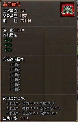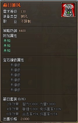2. 蔽日套装为130级装备。