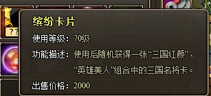 特殊说明:使用缤纷卡片后可随机获得一张“三国红颜”、“英雄美人”组合中的三国名将卡。