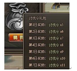 1. 新增讨伐令礼包,需要花费300金币,具体奖励内容如下