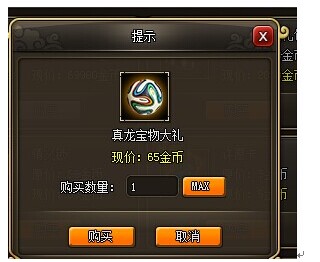 1. 新上架“真龙宝物大礼”,使用后,可获得一个真龙图鉴,以及一个宝物升星符,售价65金币