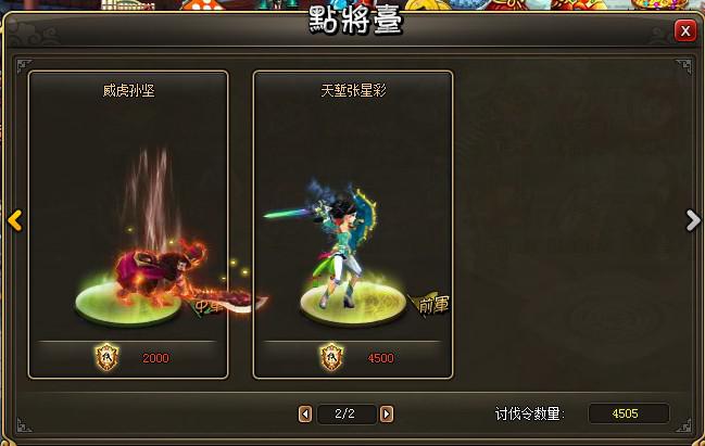 “天堑张星彩”可在点将台兑换,需要花费4500个讨伐令