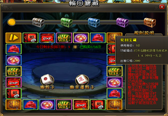 2.玩家投掷骰子可在轮回宝藏中前进相应点数格子数并获得相应格子中的奖励