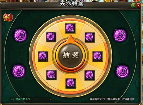 1.活动期间,玩家每消耗一定得数量的天命系统升级材料,可获得一次转动转盘的几率,获取额外的天命系统升级材料