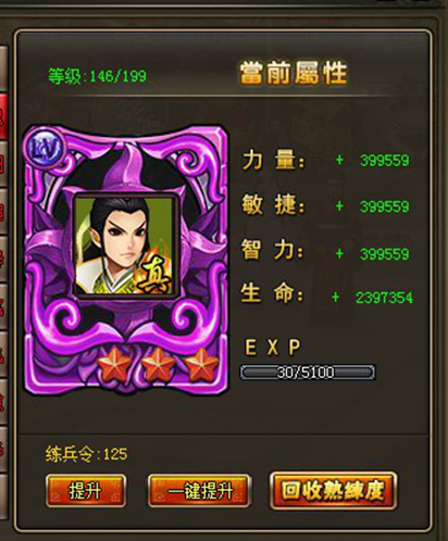 3.玩家可回收100%指定武将身上的熟练度材料