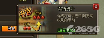 那么军衔要如何升级呢?军衔的等级和玩家获得的声望息息相关,玩家在竞技场和军团战中都能获得大量的声望,当声望积累到可以提升军衔时,系统会有提示玩家升官的小对话框弹出,人性化的设计让玩家不会错过每一次军衔晋升的机会,及时提升角色属性,获得更强的主将品质。