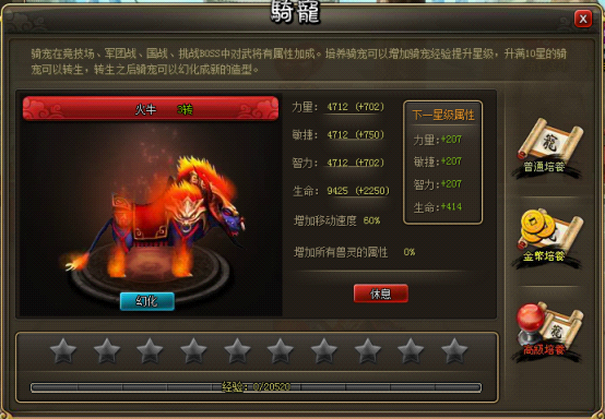 全民普及,绿色出行,新版骑宠大变身,价格超低,性价比超高!培养至的卢只需1000金币,培养至冰狼只需3000金币,培养至火牛只需6000金币……