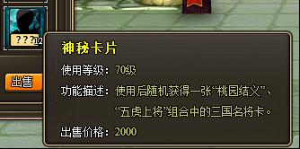 特殊说明:使用神秘锦囊或者缤纷锦囊,分别可以获得“神秘卡片”和“缤纷卡片”。使用神秘卡片后可随机获得一张“桃园结义”、“五虎上将”组合中的三国名将卡。