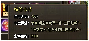 特殊说明:使用缤纷卡片后可随机获得一张“三国红颜”、“英雄美人”组合中的三国名将卡。