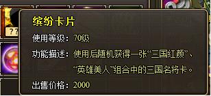 特殊说明:使用缤纷卡片后可随机获得一张“三国红颜”、“英雄美人”组合中的三国名将卡。