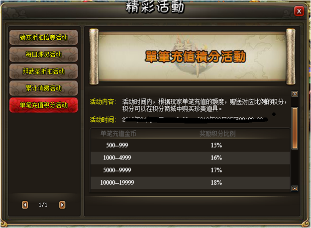 2、充值得到相应的积分比例,可以在“精彩活动”界面直接查看: