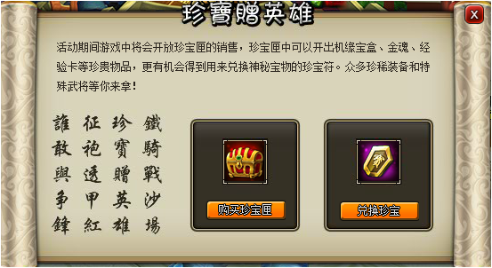 注:活动期间所有珍宝只能兑换一次,已经兑换过的奖励将无法再次进行兑换。珍宝匣购买没有限制。