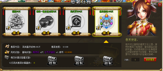 7)每完成一个悬赏任务,按完成任务的星级累积星级数,累积到一定星级获得额外奖励。