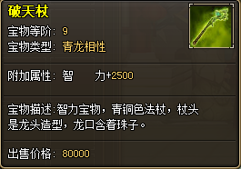 Ø 破天杖:智力宝物,青铜色法杖,杖头是龙头造型,龙口含着珠子。