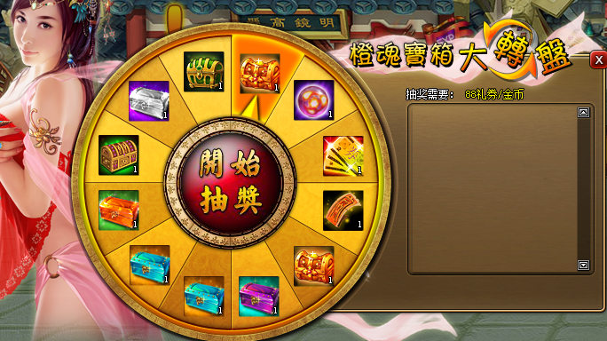 3. 符合要求的玩家直接消耗金币抽取,每次88金币/礼券,(如号上有礼券,会优先消耗礼券),价格不随抽奖次数递增。