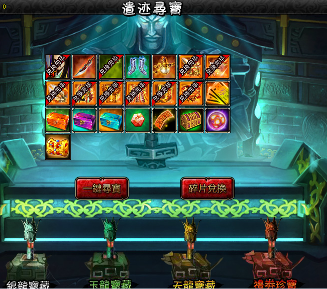 3) 因古墓珍宝活动已结束,所以之前在古墓珍宝活动中已获得过稀有套装及宝物的玩家,在遗迹寻宝中将显示为已获得状态。
