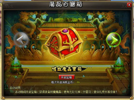 活动介绍:活动开启时,在右上角显示专用入口【魔晶百宝箱】。