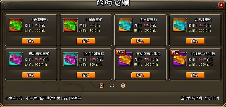 活动内容:活动期间内,大于或等于70级玩家可通过金币购买和关卡掉落获得稀世宝箱,打开可获得海量将魂、声望以及珍贵道具奖励。