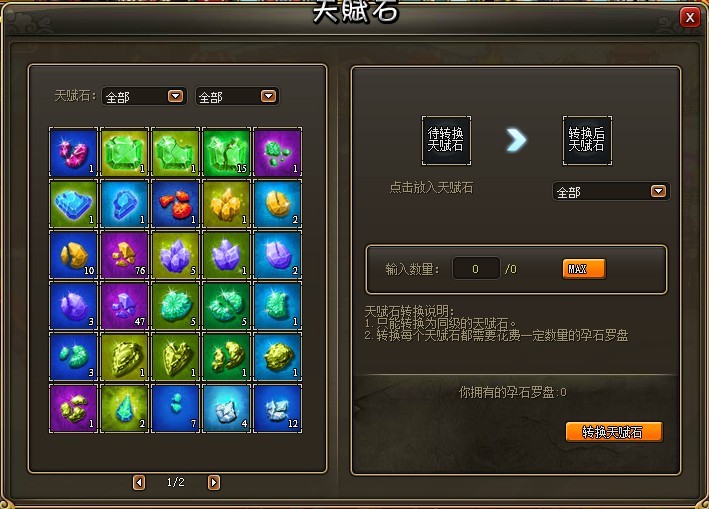 3)宝石转换需要消耗一定的孕石罗盘,孕石罗盘可在活动中获得。