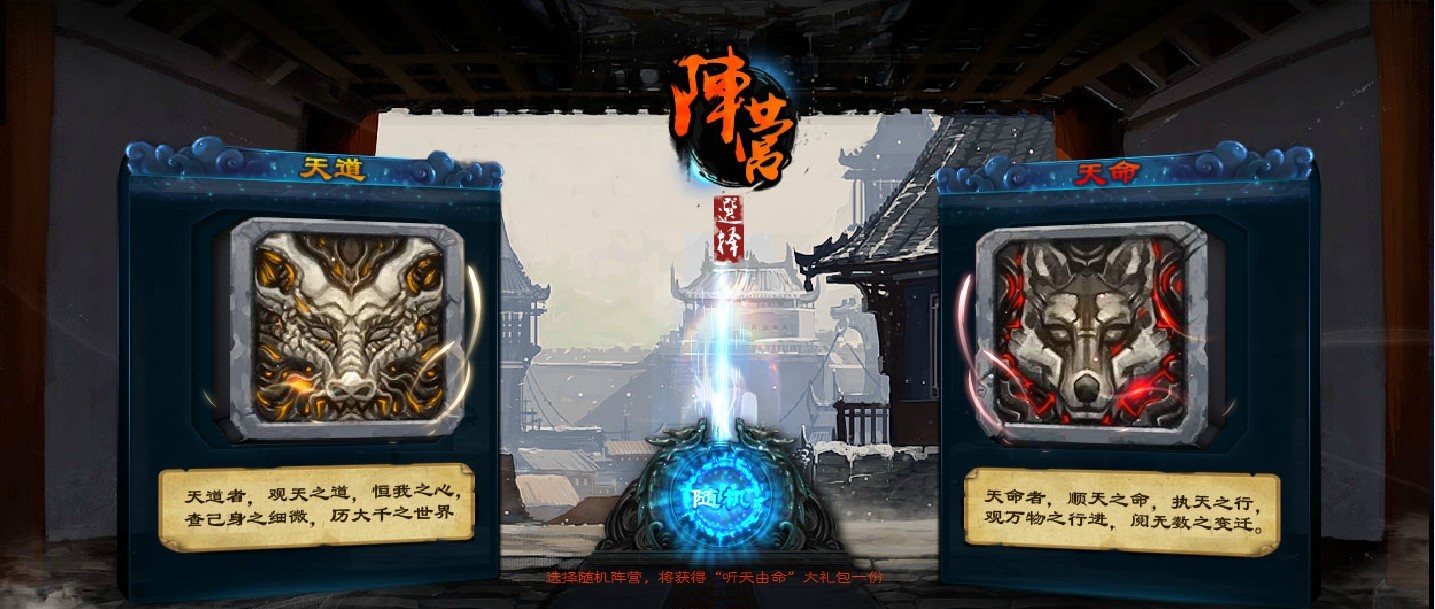 阵营分为天命和天道,一旦加入将不能改变,请谨慎选择。玩家只能加入同阵营的军团,同时阵营战时会与对立阵营对战。