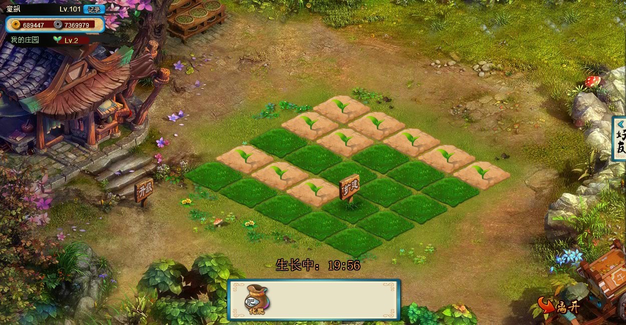 点击家园按钮可以进入另一个龙狼三国的特色系统——百草园,在这里我们可以通过种菜获取银币,到好友的菜园帮忙或偷菜。后期还会加入各种特殊种子,各种百草园装饰,打造属于自己的一遍小天地。