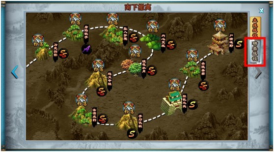 《龙狼三国》中每个地图都分主线战役及精英战役,可以在右侧分页处进行切换。