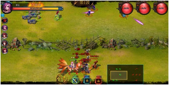 1、敌人将从上,中,下三路对神龙发起轮番的攻击,共30波,你的武将根据阵法将会出现在三路进行防御。