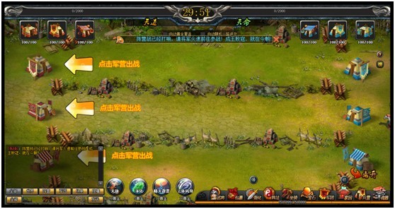 每日20:00-21:00玩家可在每日活动处报名参加,点击任意兵营即可在相应的线上出战。