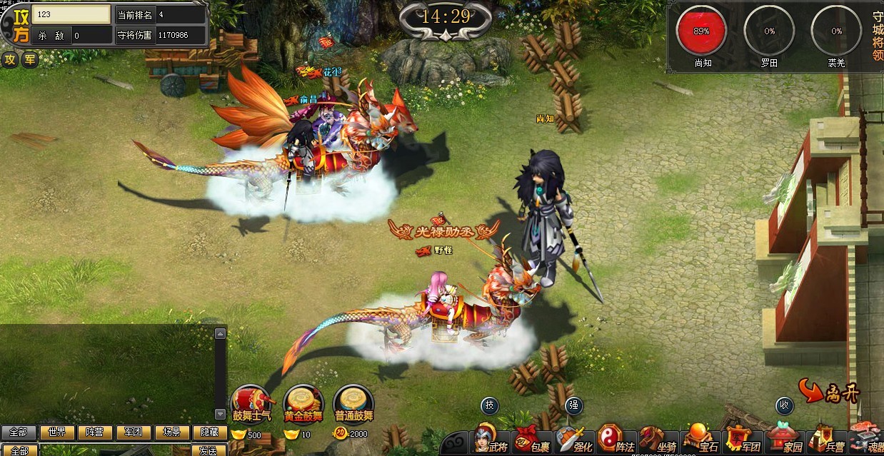 1. 所有玩家都可通过黄金或者军功进行鼓舞,增加自身的攻击力。