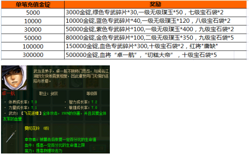 活动内容:活动期间,游戏内充值活动,玩家单笔充值一定金额,即可获得相应的充值金锭返利.