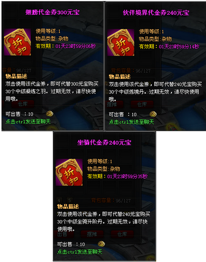 (每天送出翅膀、伙伴、坐骑代金券)